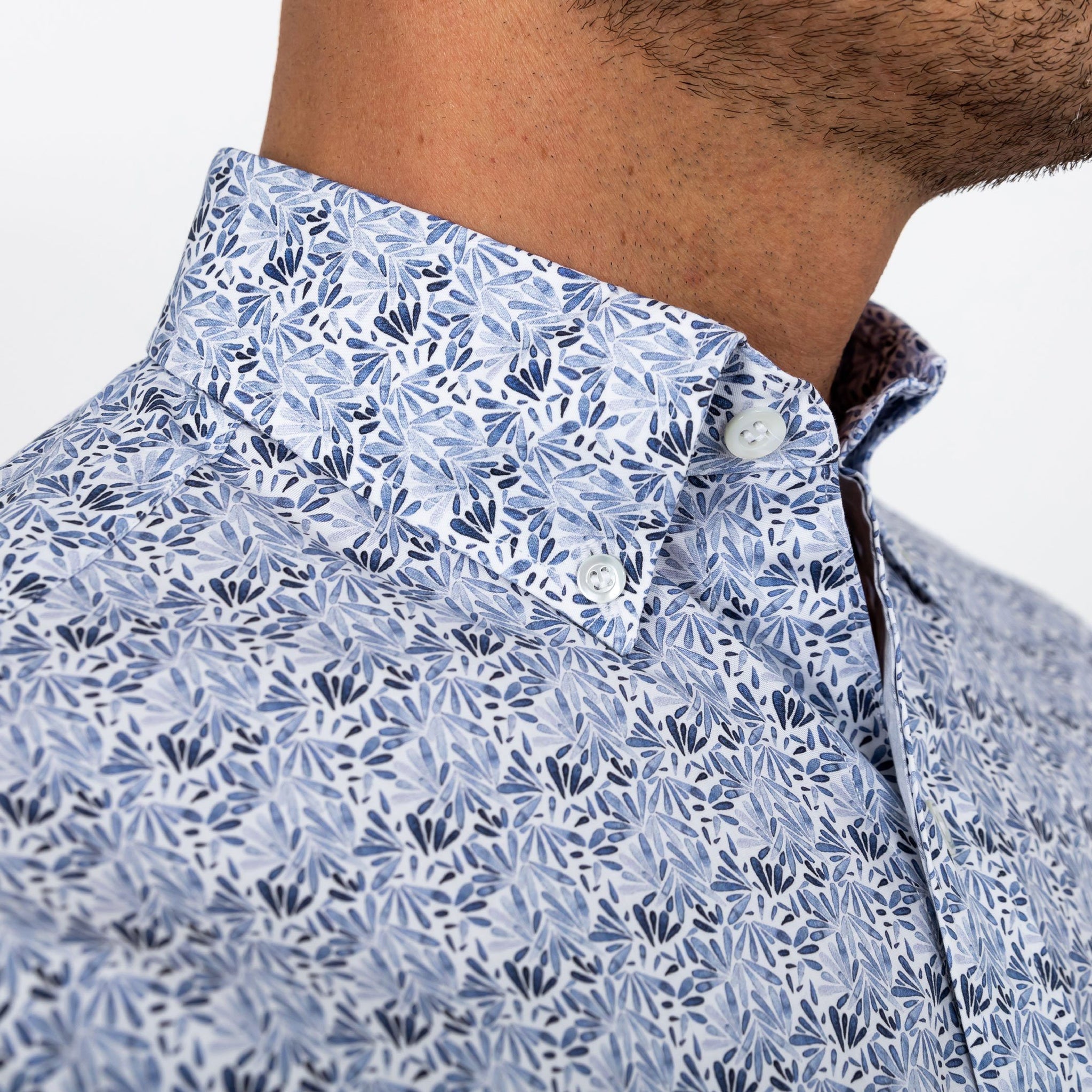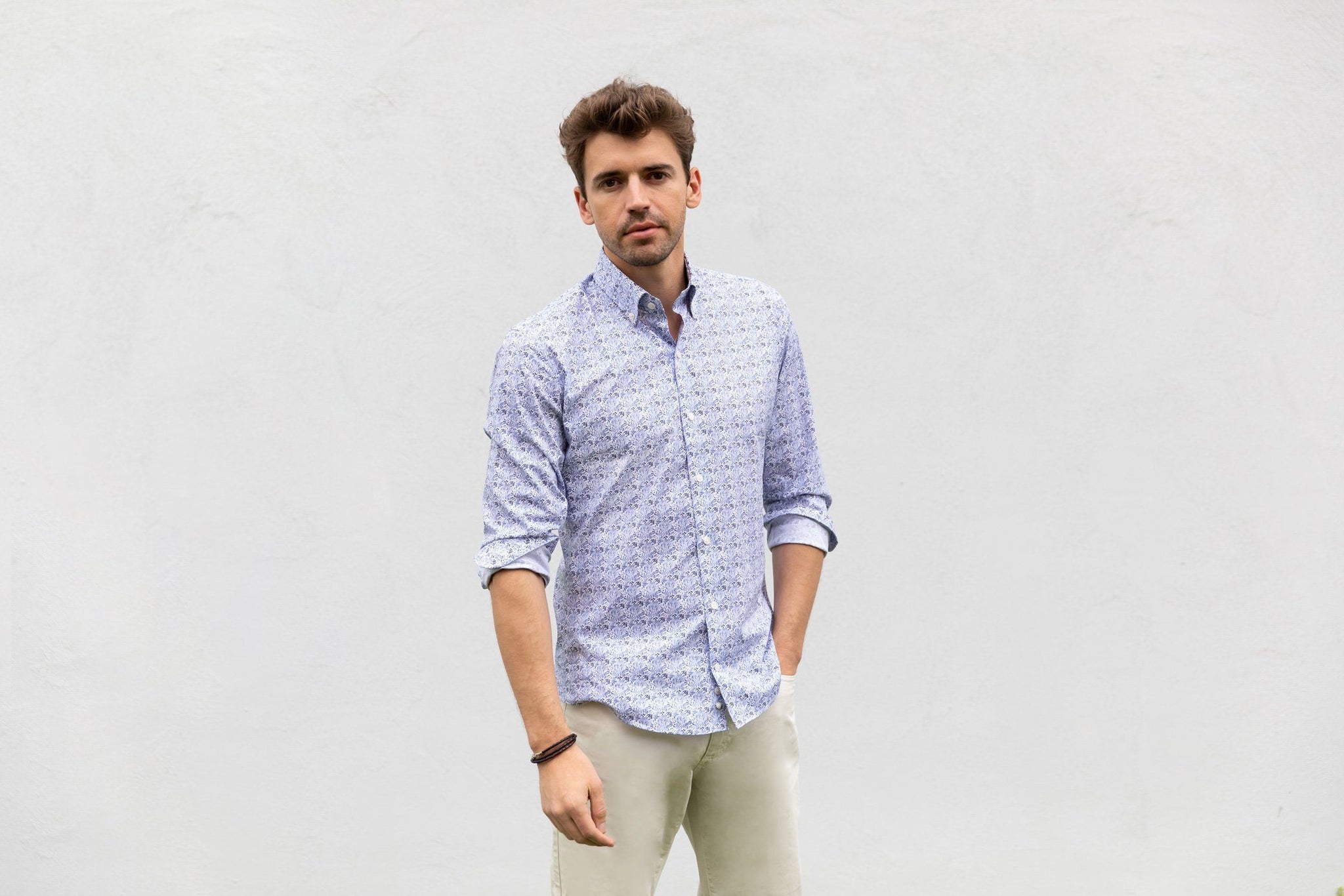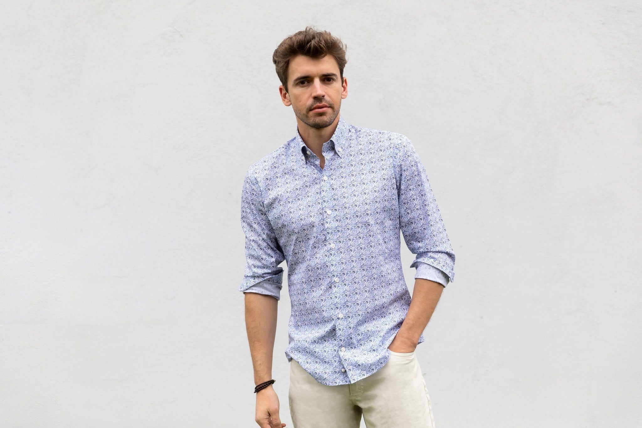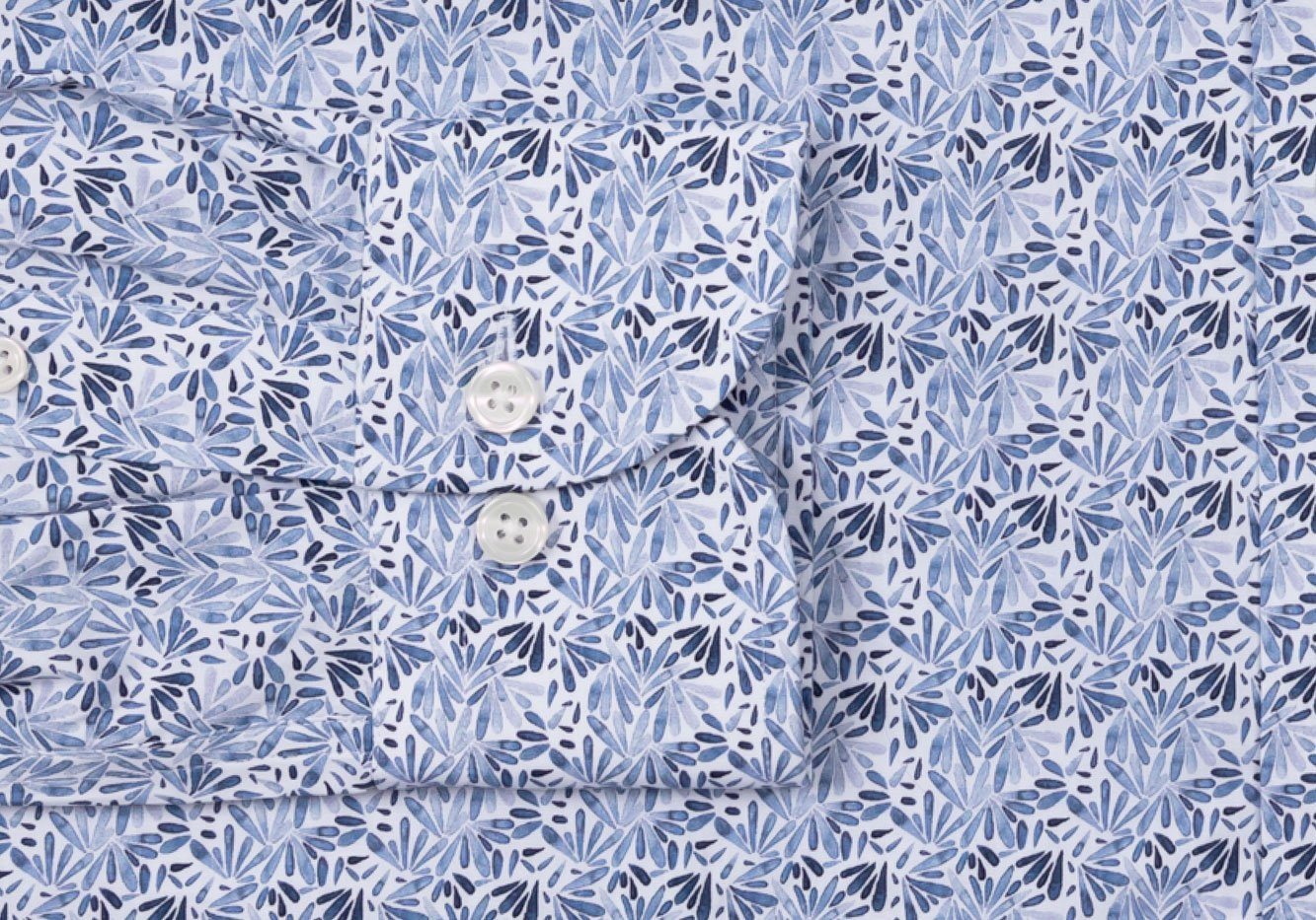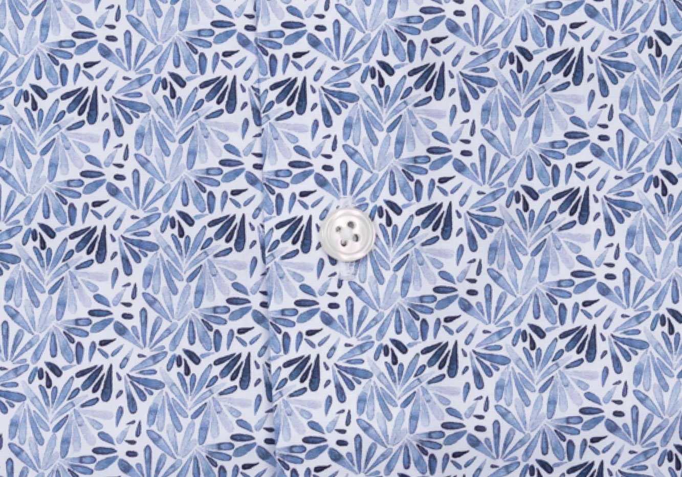 Ring in spring with this creative style. Woven with a crisp white poplin, this floral-inspired shirt features tonal blue colors with a watercolor-like print. Add some color and interest to your spring wardrobe without being over the top. Finished with a dash of comfort stretch to move with you when you need it.