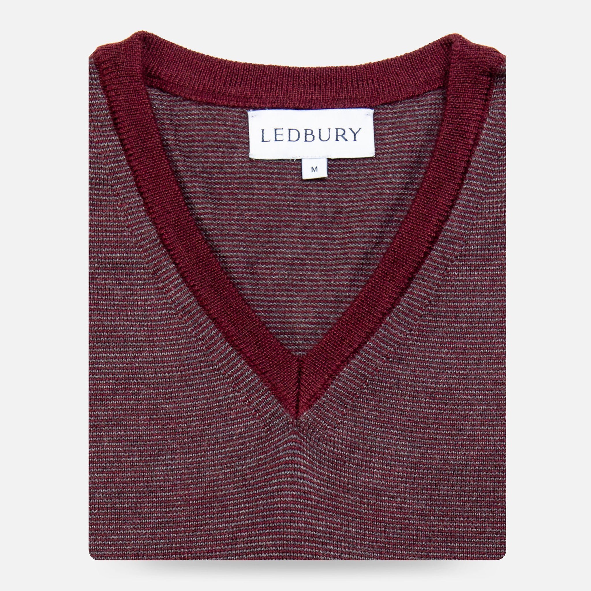 The Emmons Stripe V Neck Sweater is your new go-to for the colder months. This extrafine wool sweater features a knitted striped pattern. This sweater was constructed from 100% extrafine wool, sourced from Italy, and has a soft and smooth handfeel. Detailed with rib-knit trim and a v-neck that lays perfectly in line with our signature lowered second button, exposing just the right amount of pattern. Made in Italy.
