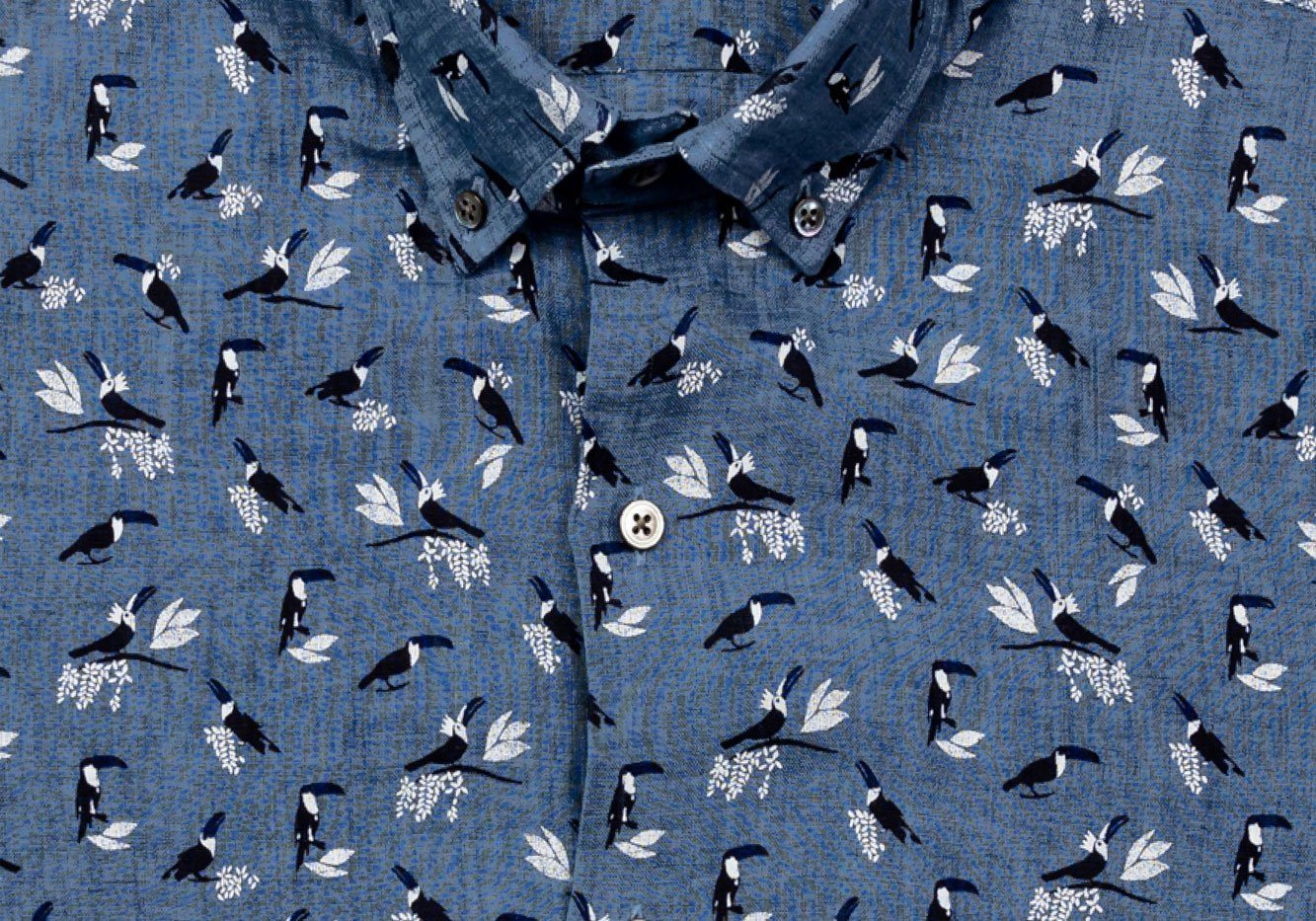 Get you tropical fix this summer with The Brookshire Print. Woven from 100% linen sourced from Ablini in Italy, this ultra-soft linen is breezy and lightweight. Dyed a summery cadet blue that will fade slightly over time, The Brookshire is then printed with a fun yet subtle toucan print. This summer style is an essential upgrade.