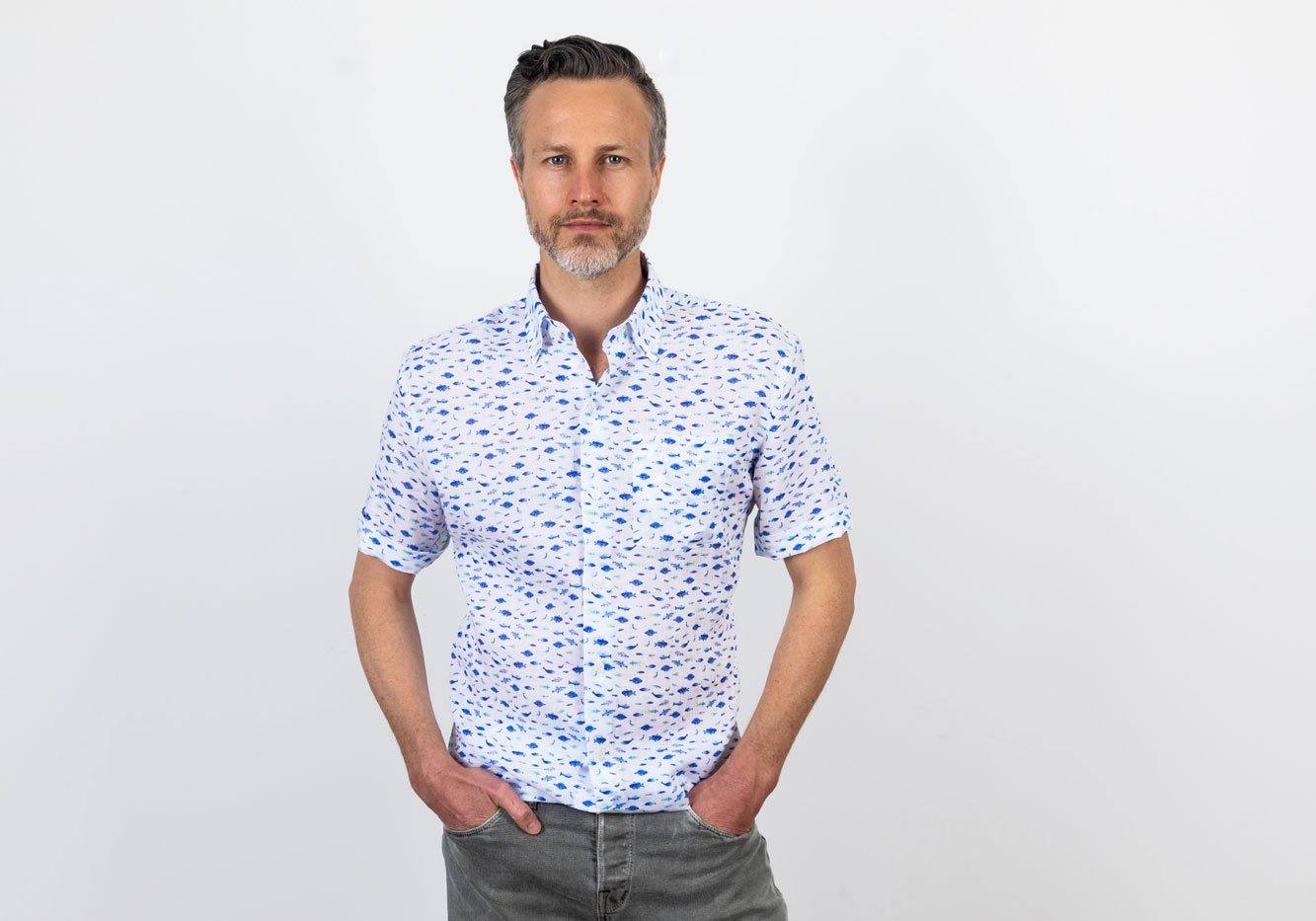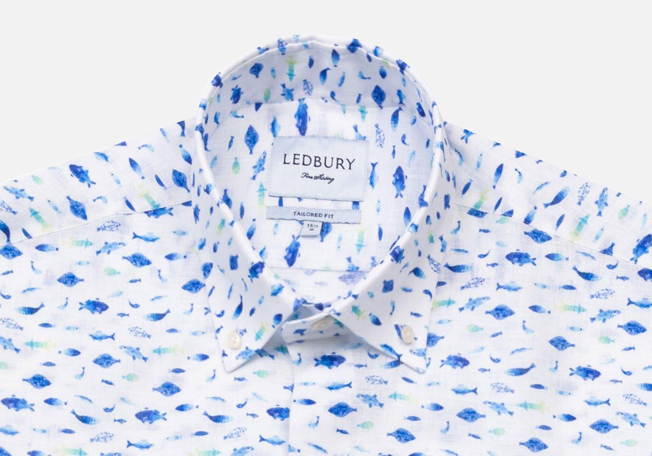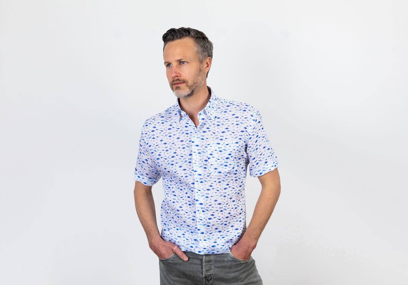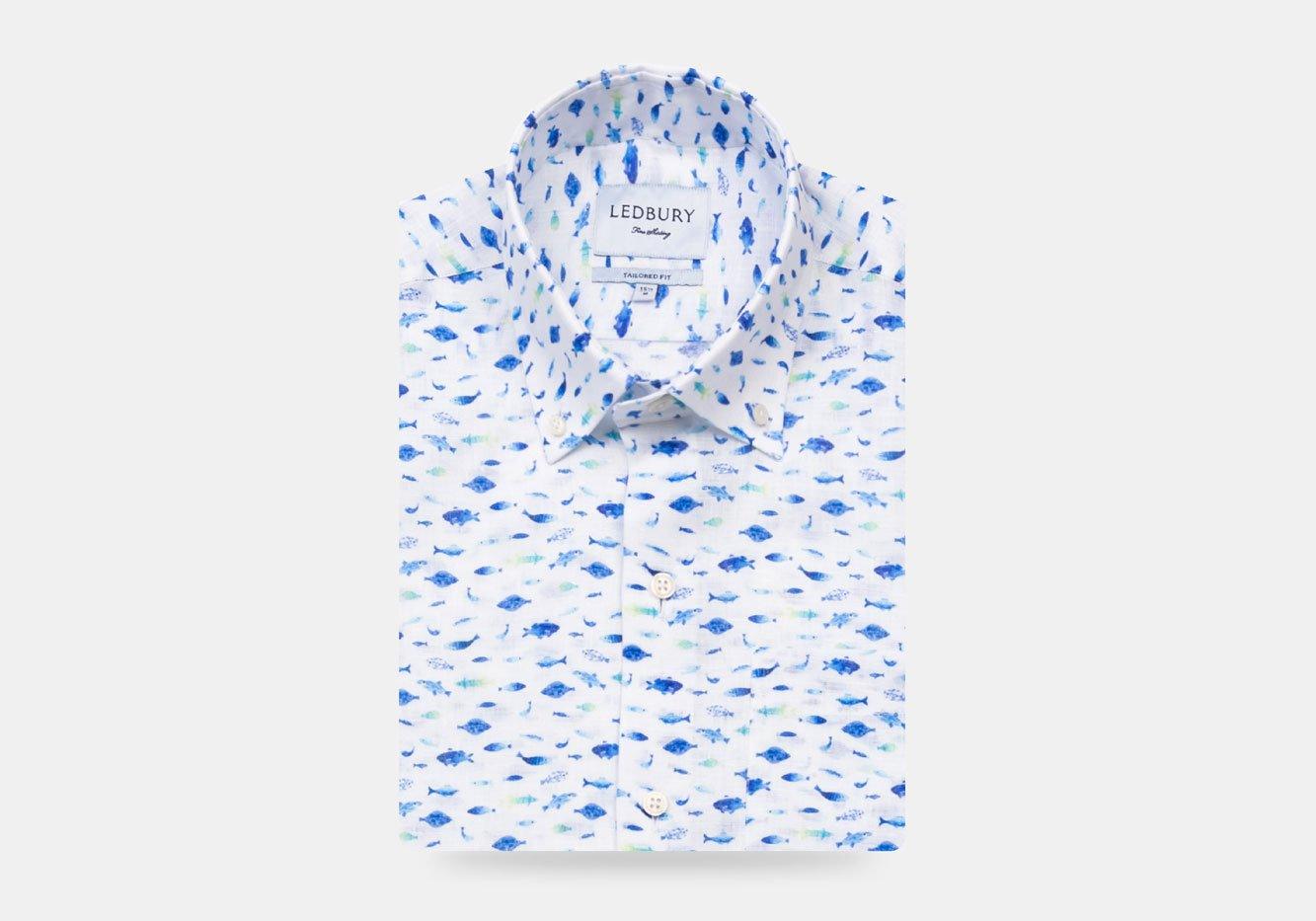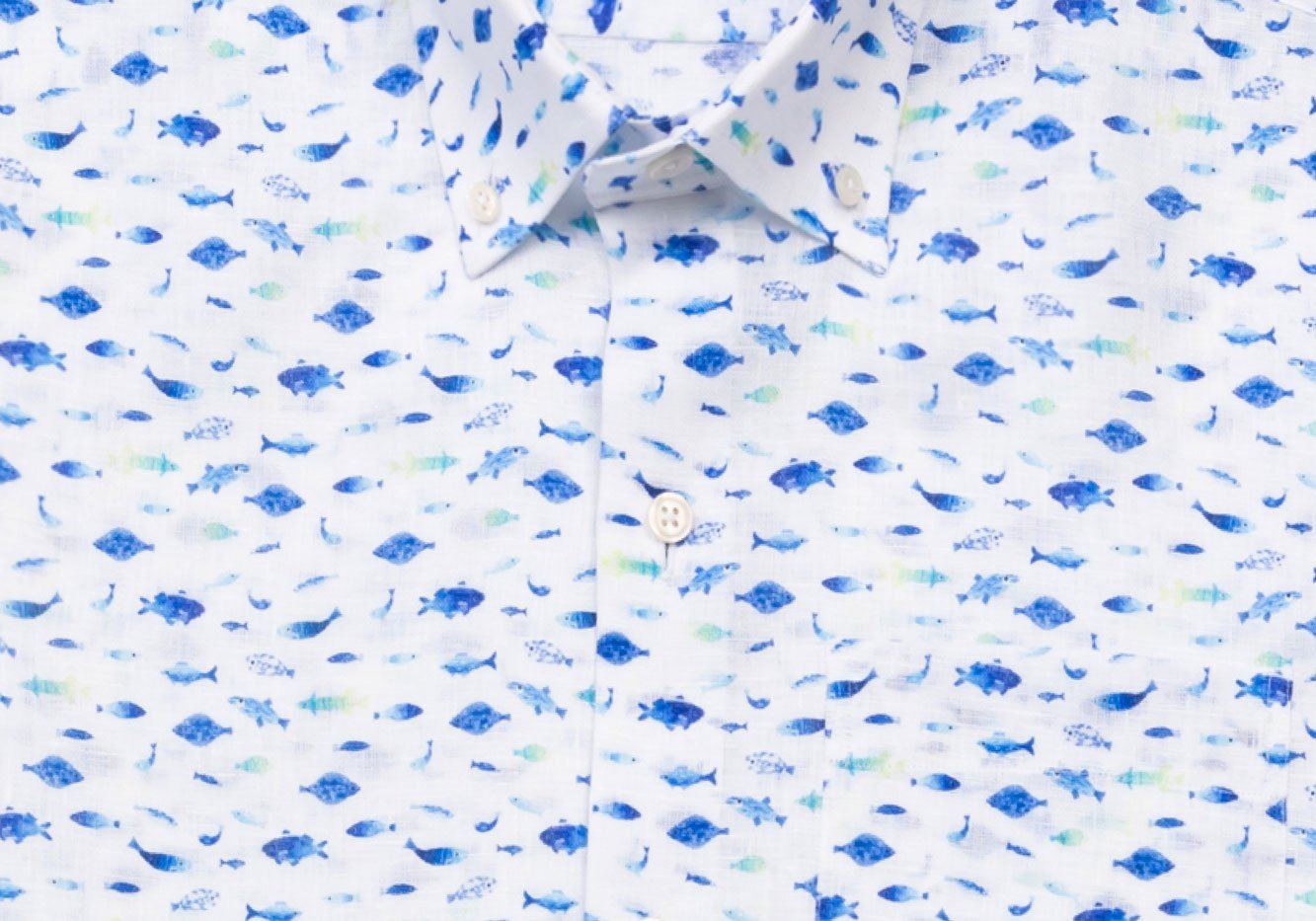 Make a splash with this summery print. The Fenbrook features a bright white linen that is printed with a watercolor-inspired fish design for an on-trend seasonal look. You’ll stay cool and comfortable thanks to this light, breezy fabric. This contemporary style has classic features like a French placket and turnback short sleeve cuffs for a timeless and laid-back look.