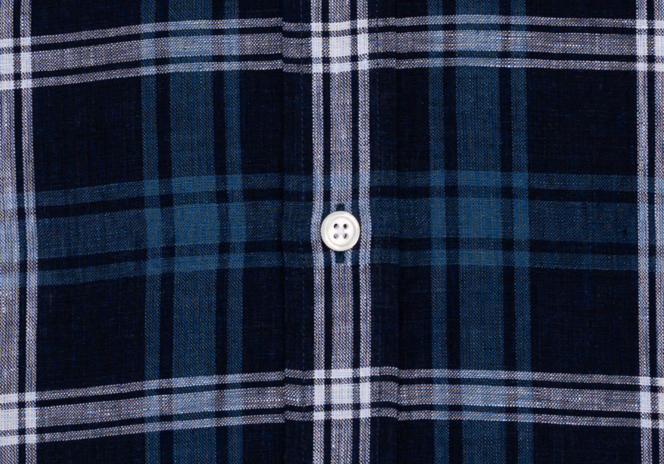 The Dark Blue Medlin Linen Plaid Casual Shirt