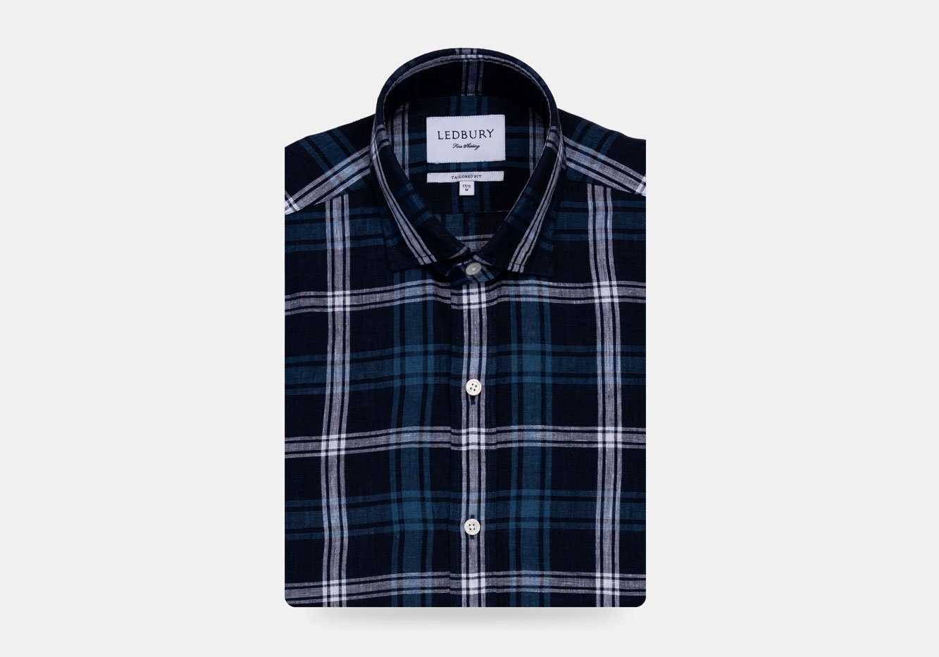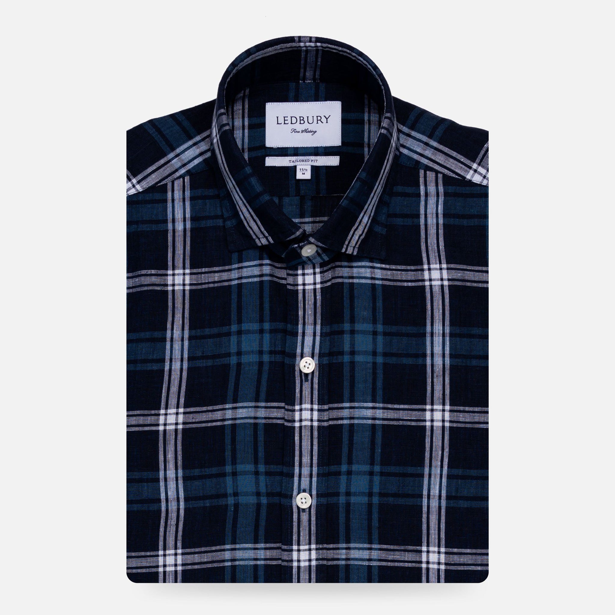 The Dark Blue Medlin Linen Plaid Casual Shirt Casual Shirt- Ledbury
