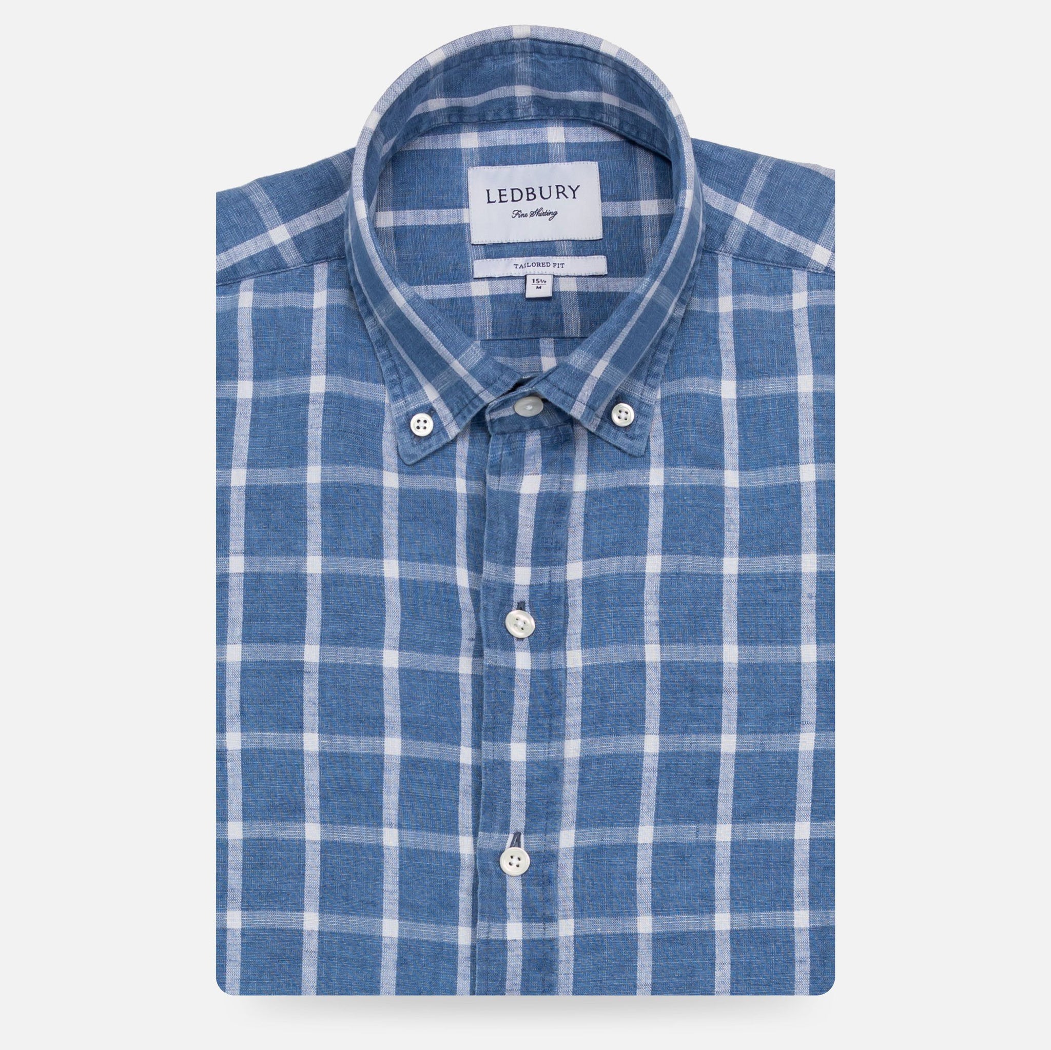 The Dark Blue Rowan Cotton Linen Windowpane Casual Shirt Casual Shirt- Ledbury