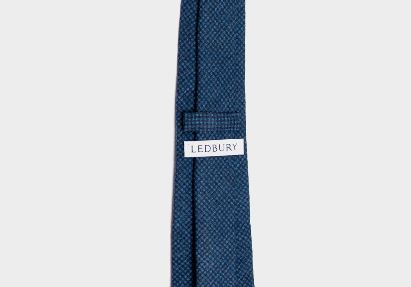 The Blenheim Tie features a navy and blue micro-check pattern with a wooly texture. Sourced from Italy. Made in the USA.