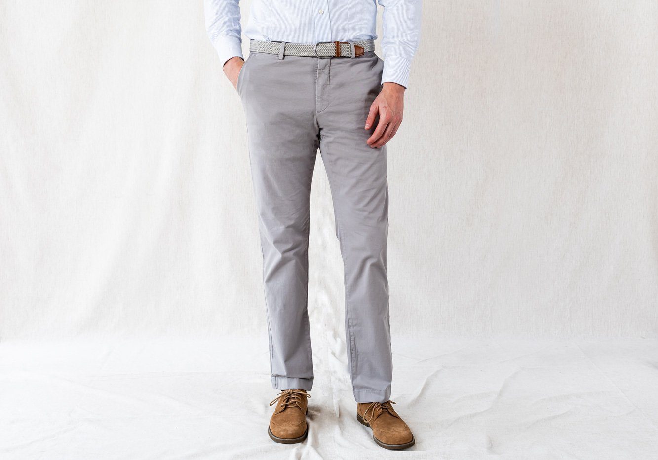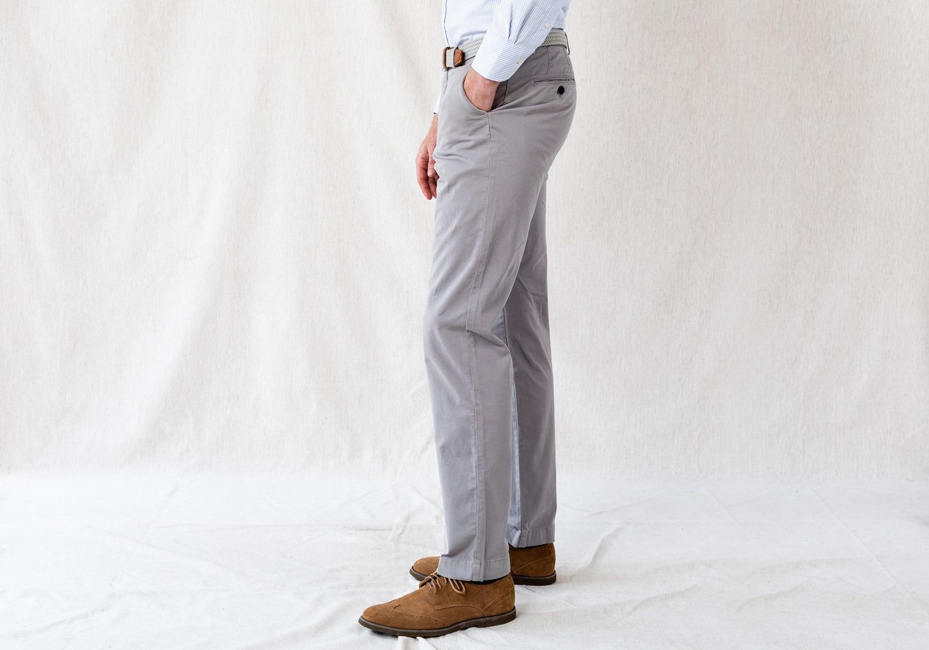 Flat front twill chinos with a modern, tailored fit. The Richmond Chino is reactive-dyed for a saturated color with a peached finish. This tailored fit pant is not too full, but not too slim. It's a fit that is made for comfort and office-appropriate.
