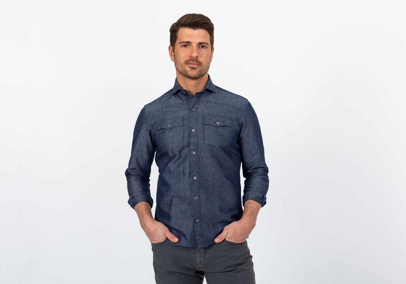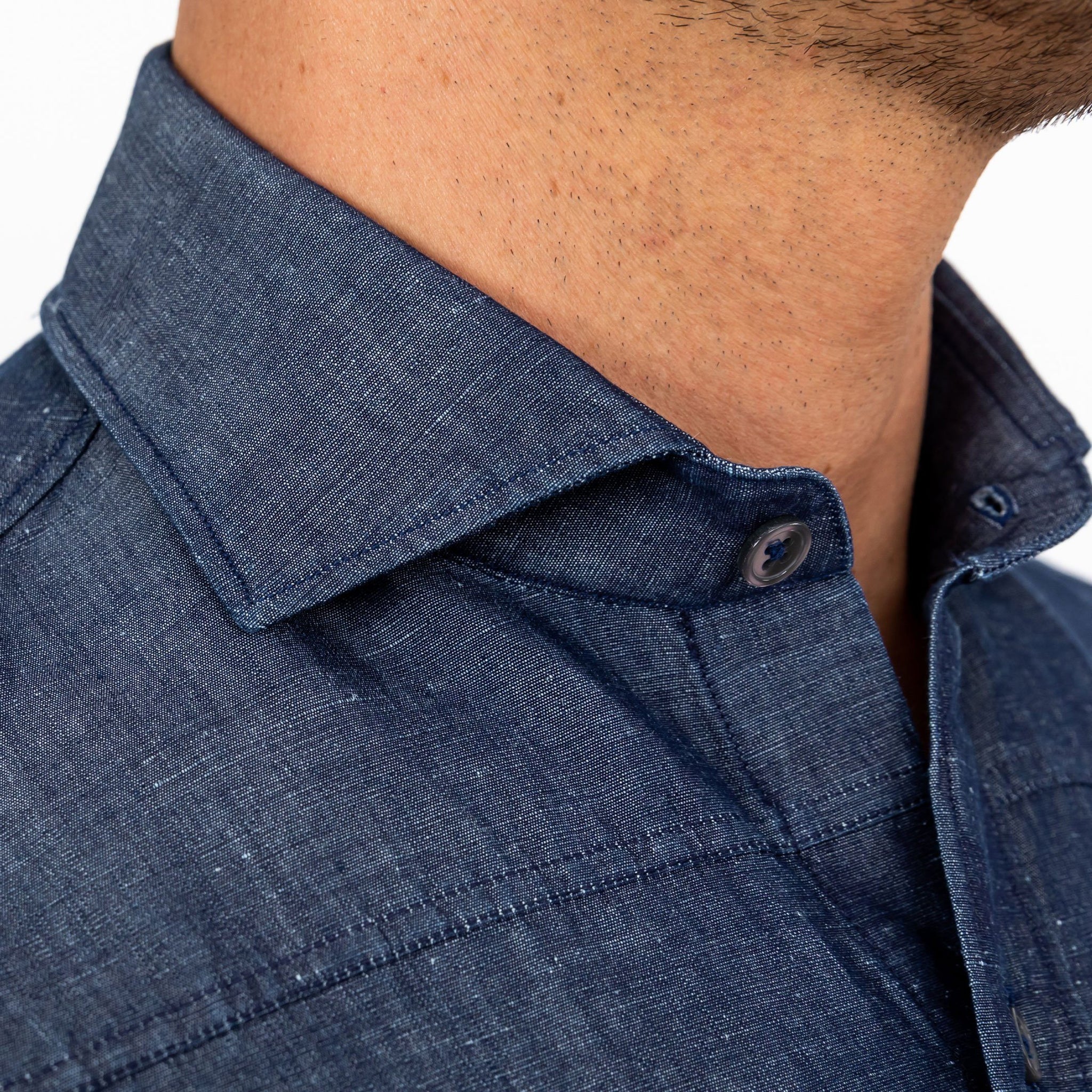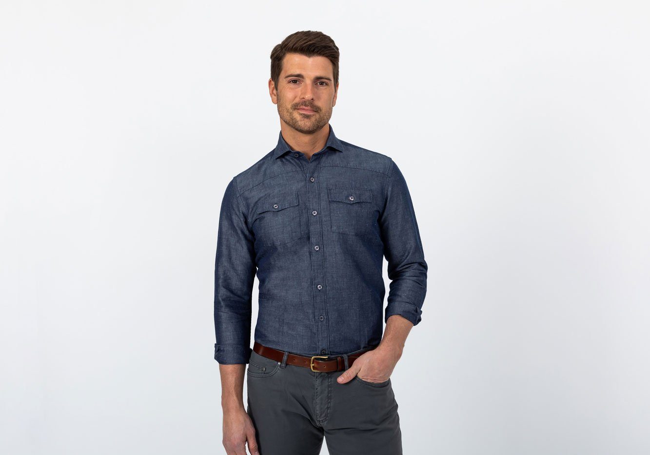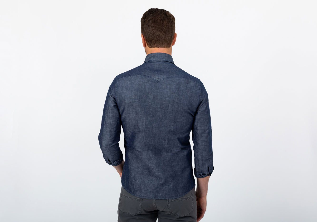 Everyone loves a good Western. We prefer ours to be indigo. This unique cotton-linen chambray fabric has been dyed with rich Indigo, created a slubby, heather look. Featuring classic western style flap pockets and back yoke, The Sherbourne is a true Western in a contemporary fit.