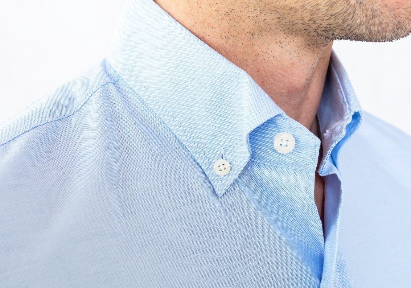 Collar: Button-down collar; finished with a canvassed interlining to prevent unwanted folding and collar collapse.