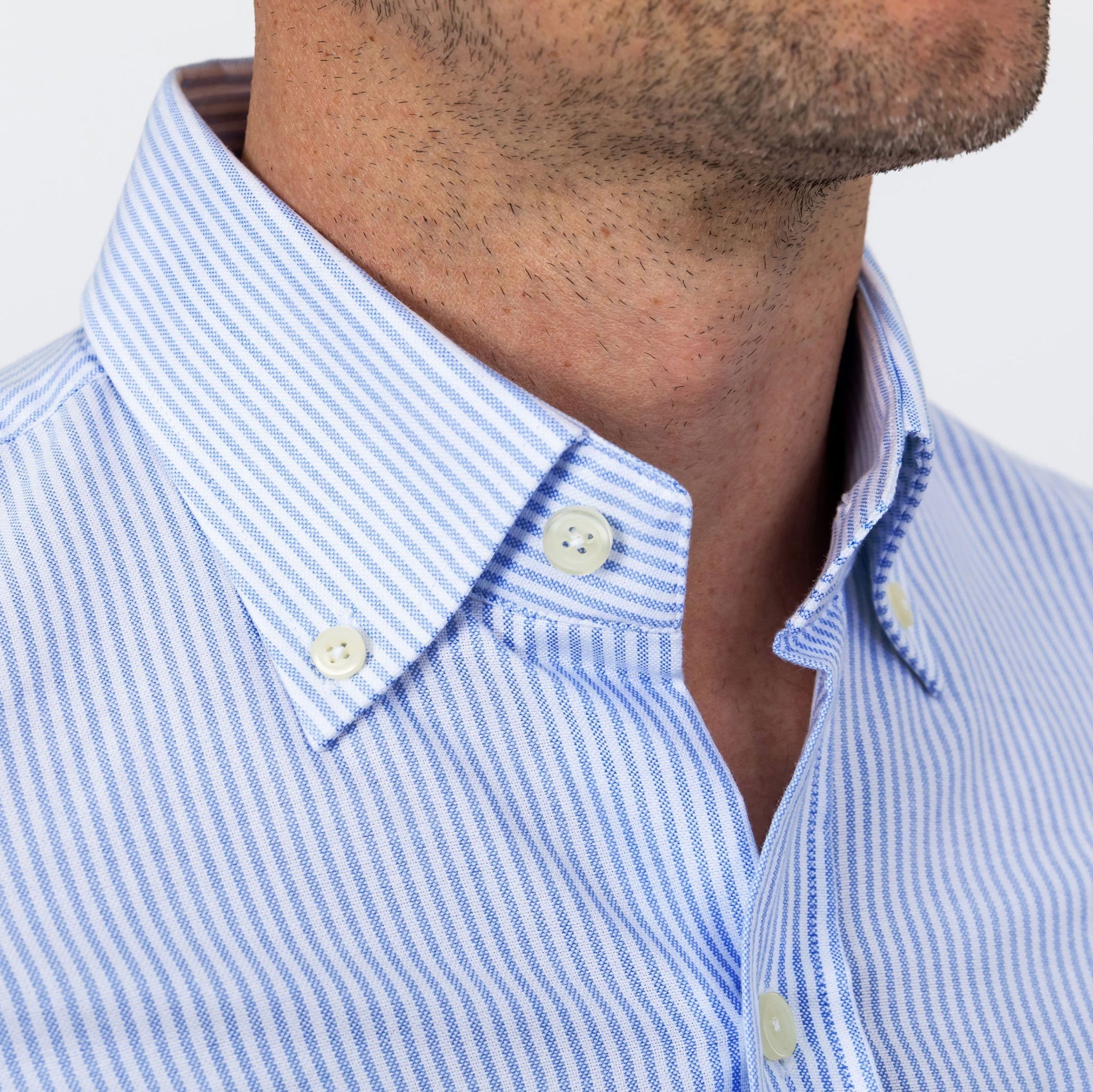 • Collar: Button-down collar; finished with a canvassed interlining to prevent unwanted folding and collar collapse.