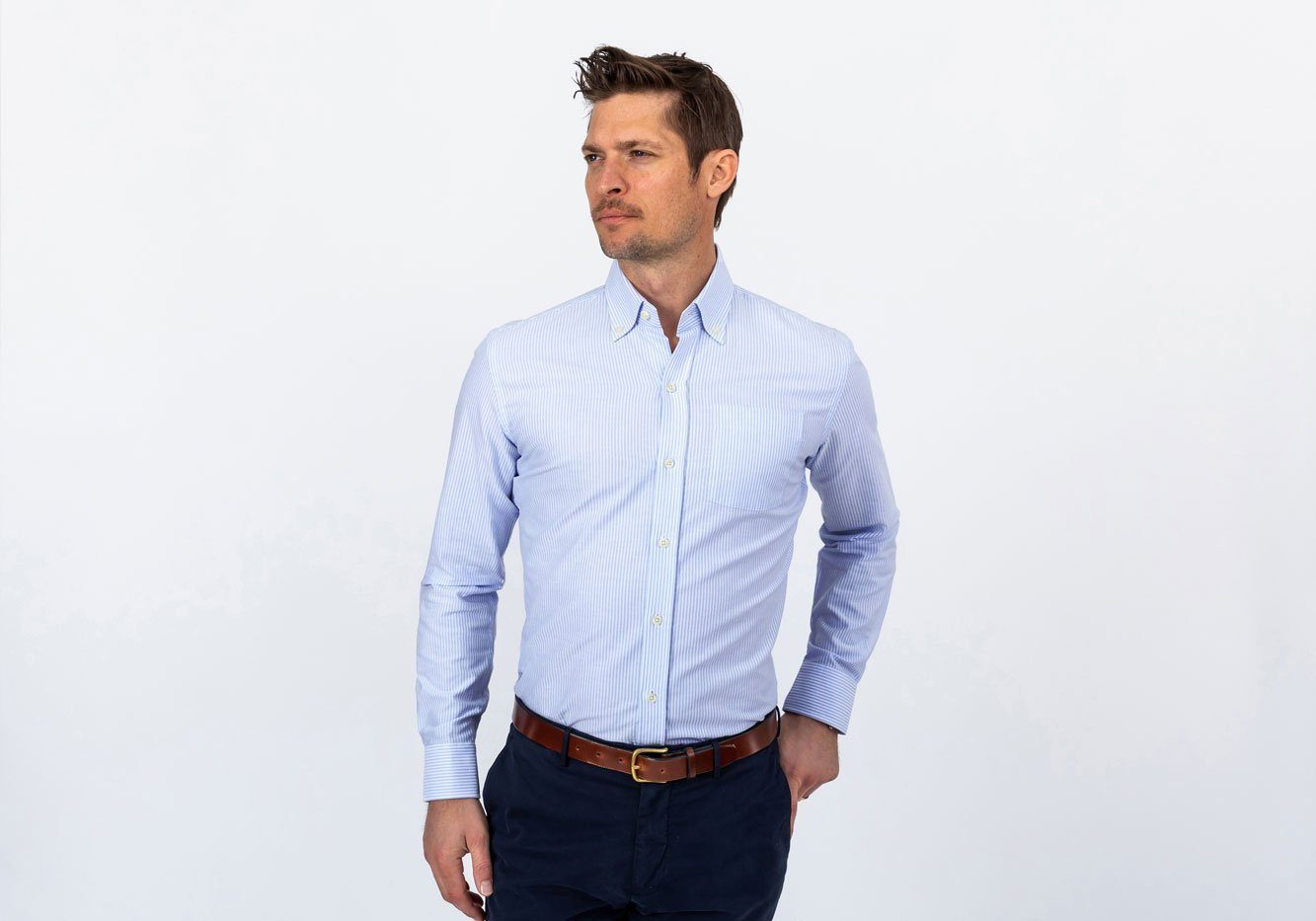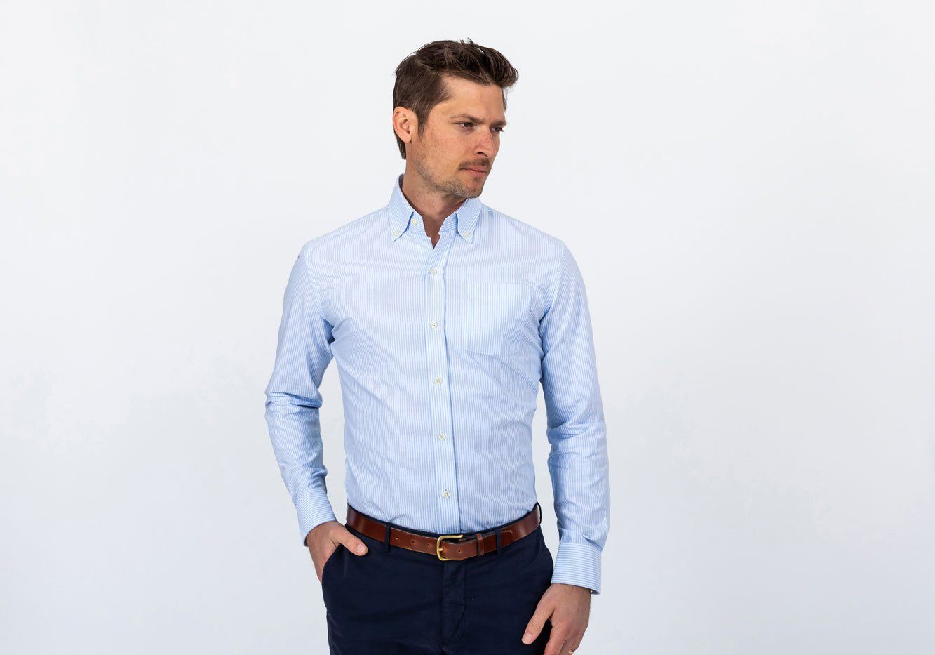The Mayfield Stripe Oxford is a classic menswear staple. A traditional Oxford featuring a blue and white stripe and a button collar, you’ll find just about any reason to wear The Mayfield Stripe. Dressing well doesn’t have to be complex. Pair this Oxford with our Franklin 5-pockets for a sharp and casual warm weather look.