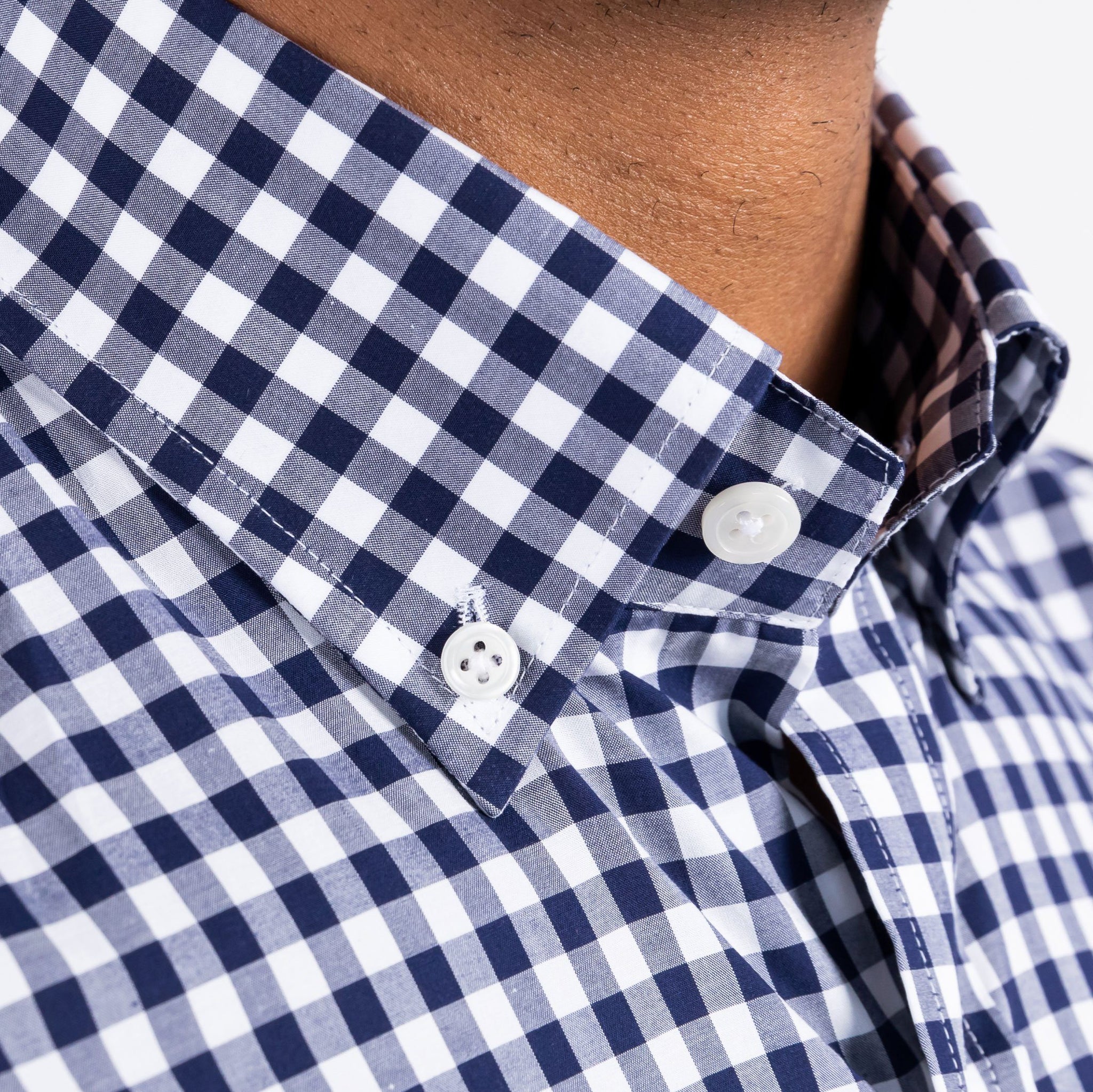 Collar: Button-down collar; finished with a canvassed interlining to prevent unwanted folding and collar collapse.