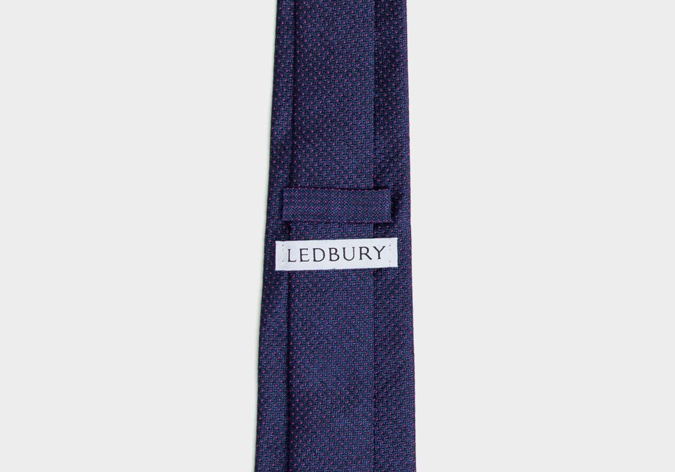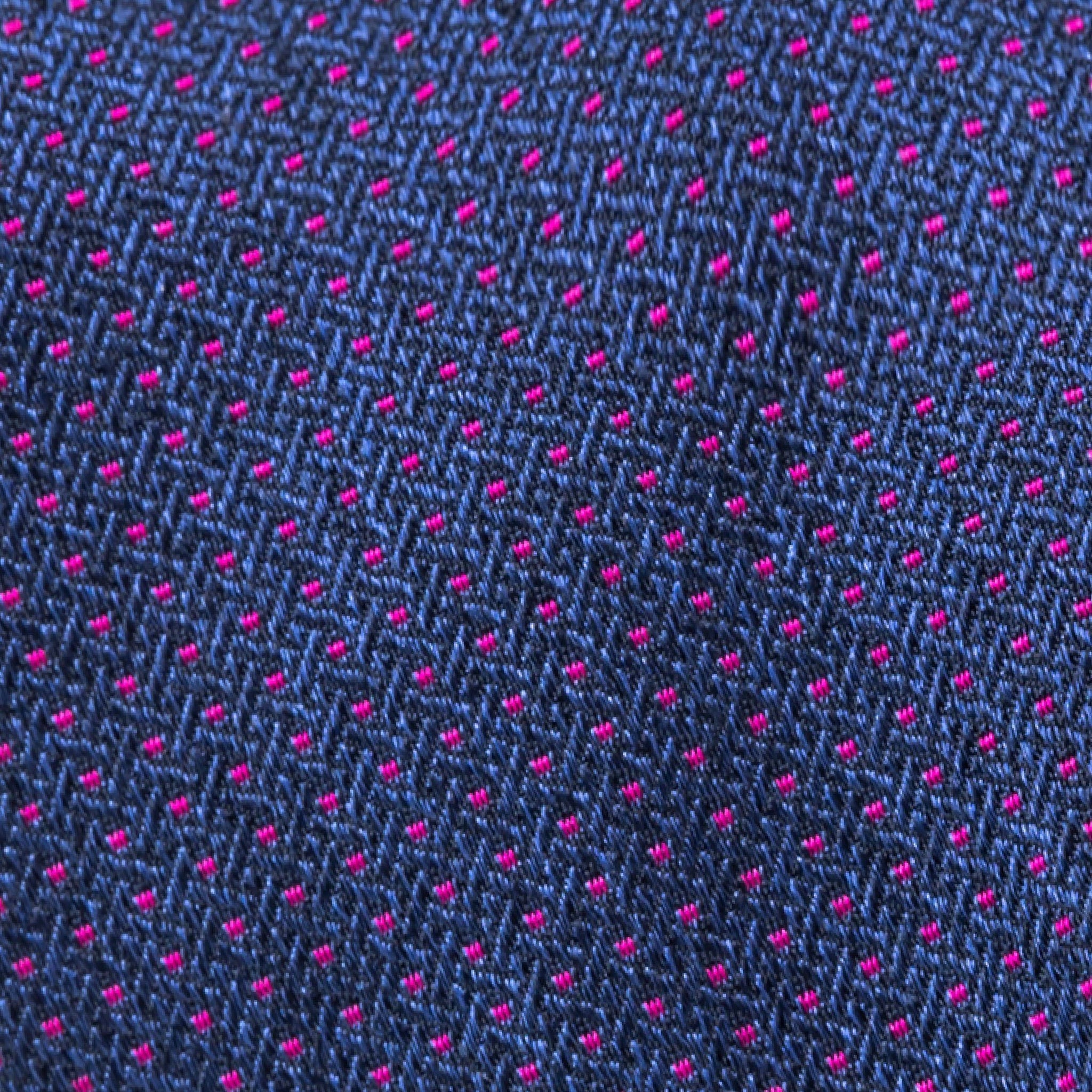 The Tilbury Tie is a workwear essential. This deep blue tie features a unique, geometric weave structure and magenta micro-dots that add subtle interest to the tie. Sourced from Italy. Made in the USA.