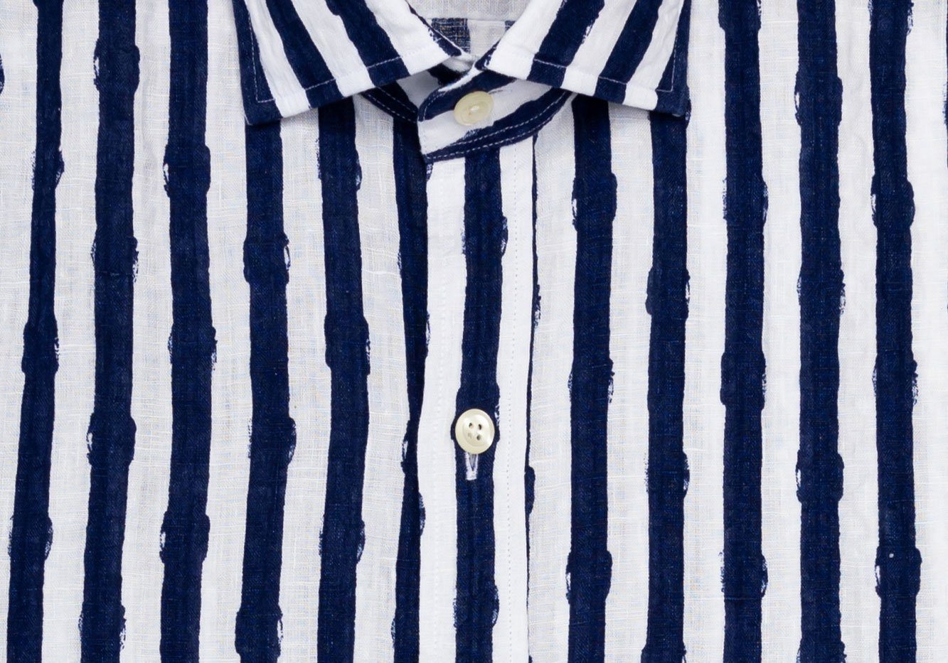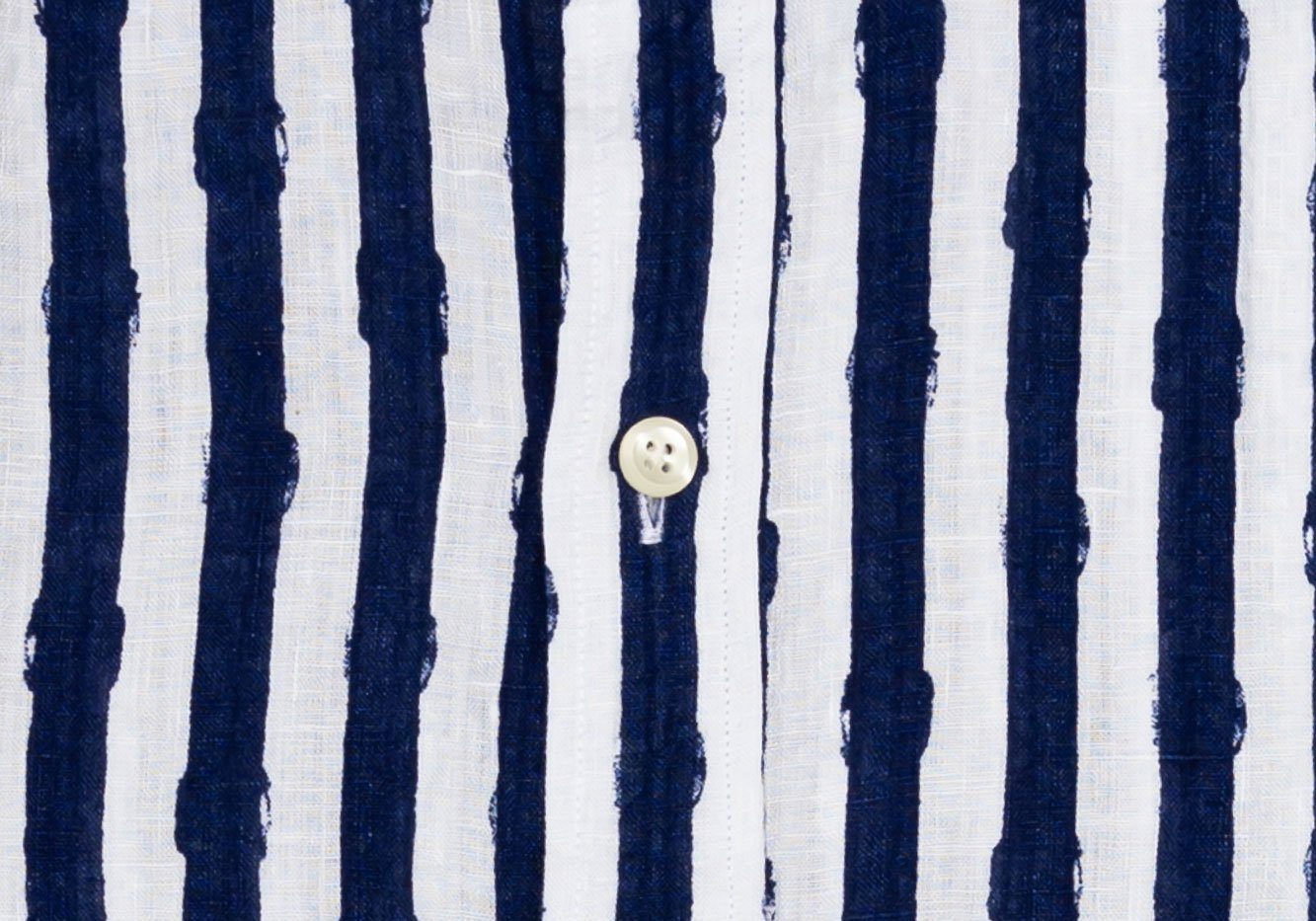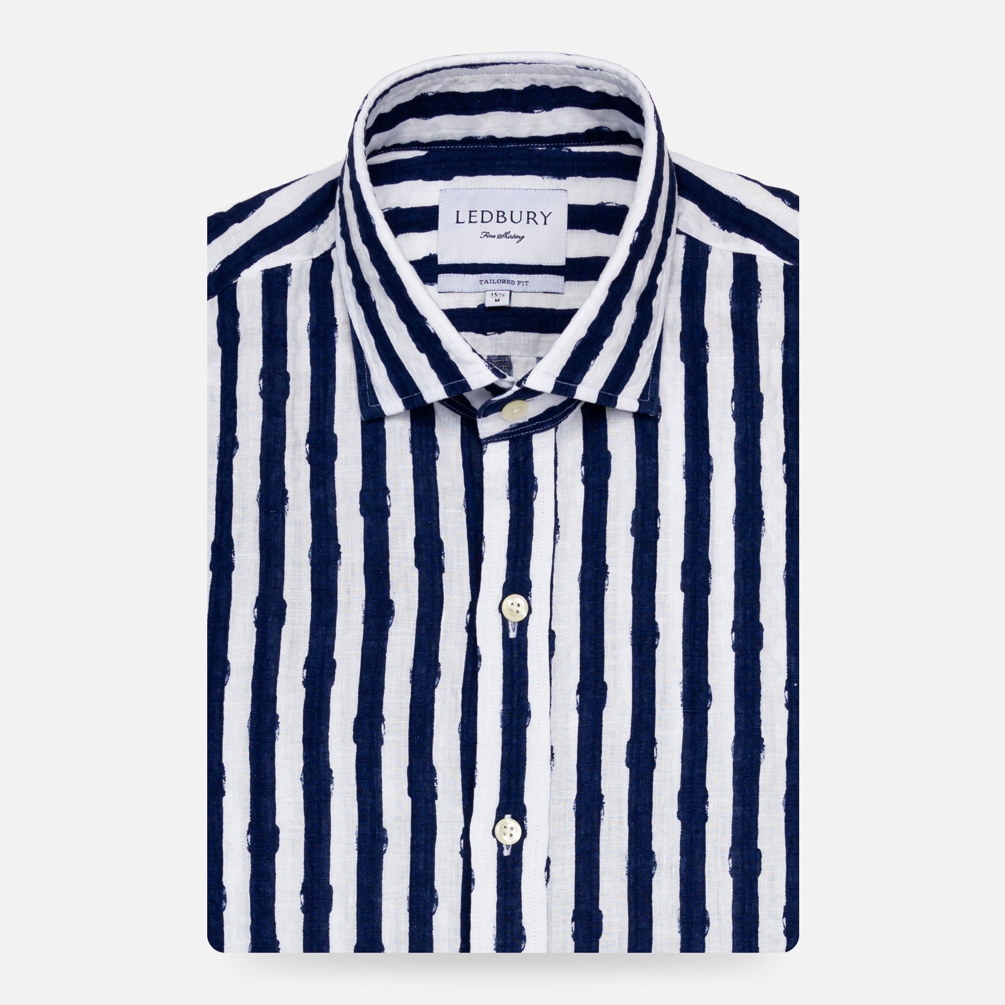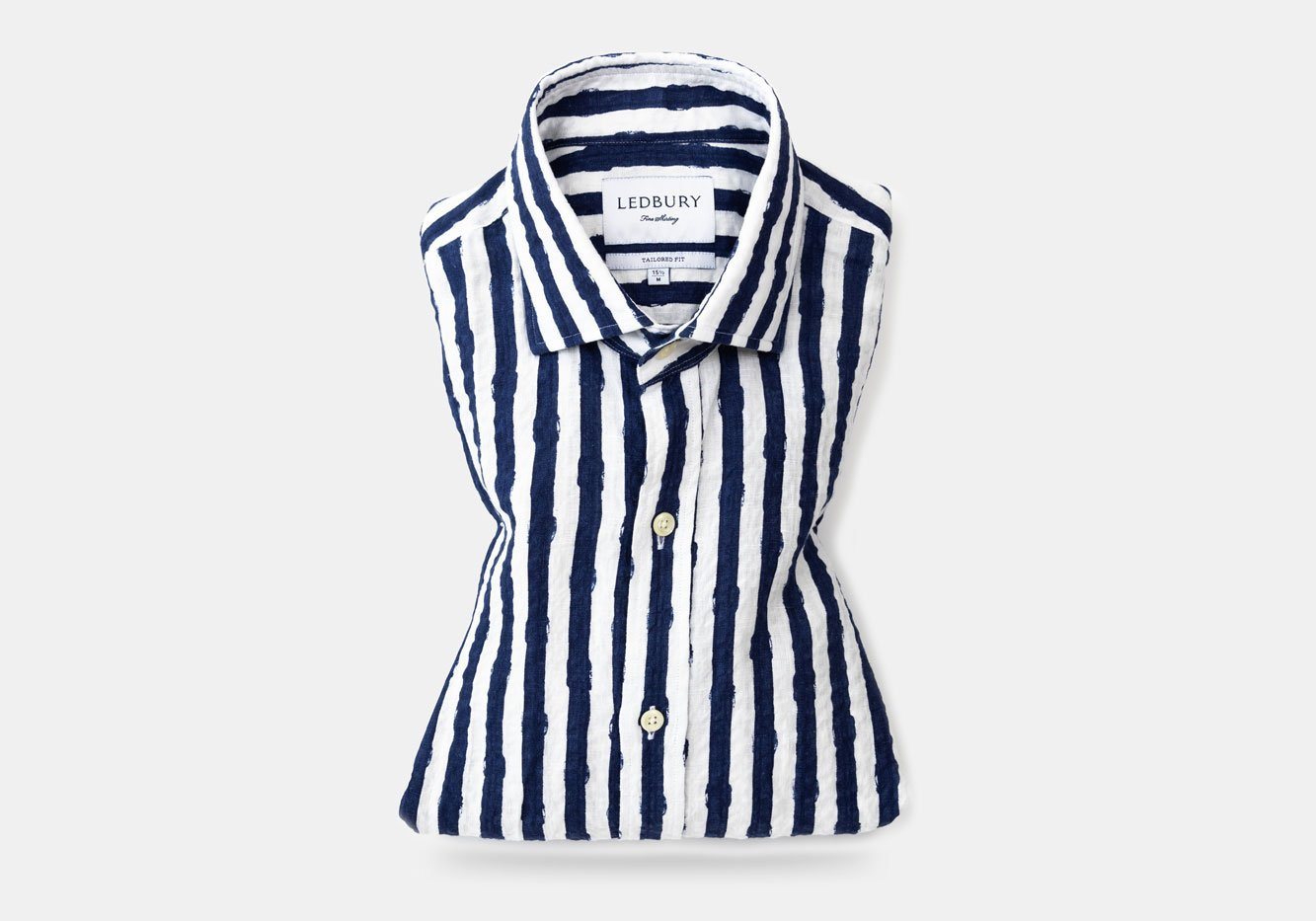 Make sure to pack this coastal-inspired style on your next vacation. Woven by the experts at Albini, The Tobin features a gauzy linen feel. Seersucker construction adds texture and the bold navy stripe print accents the rise and fall of the fabric. This lightweight style is breezy and breathable—perfect for warm days.