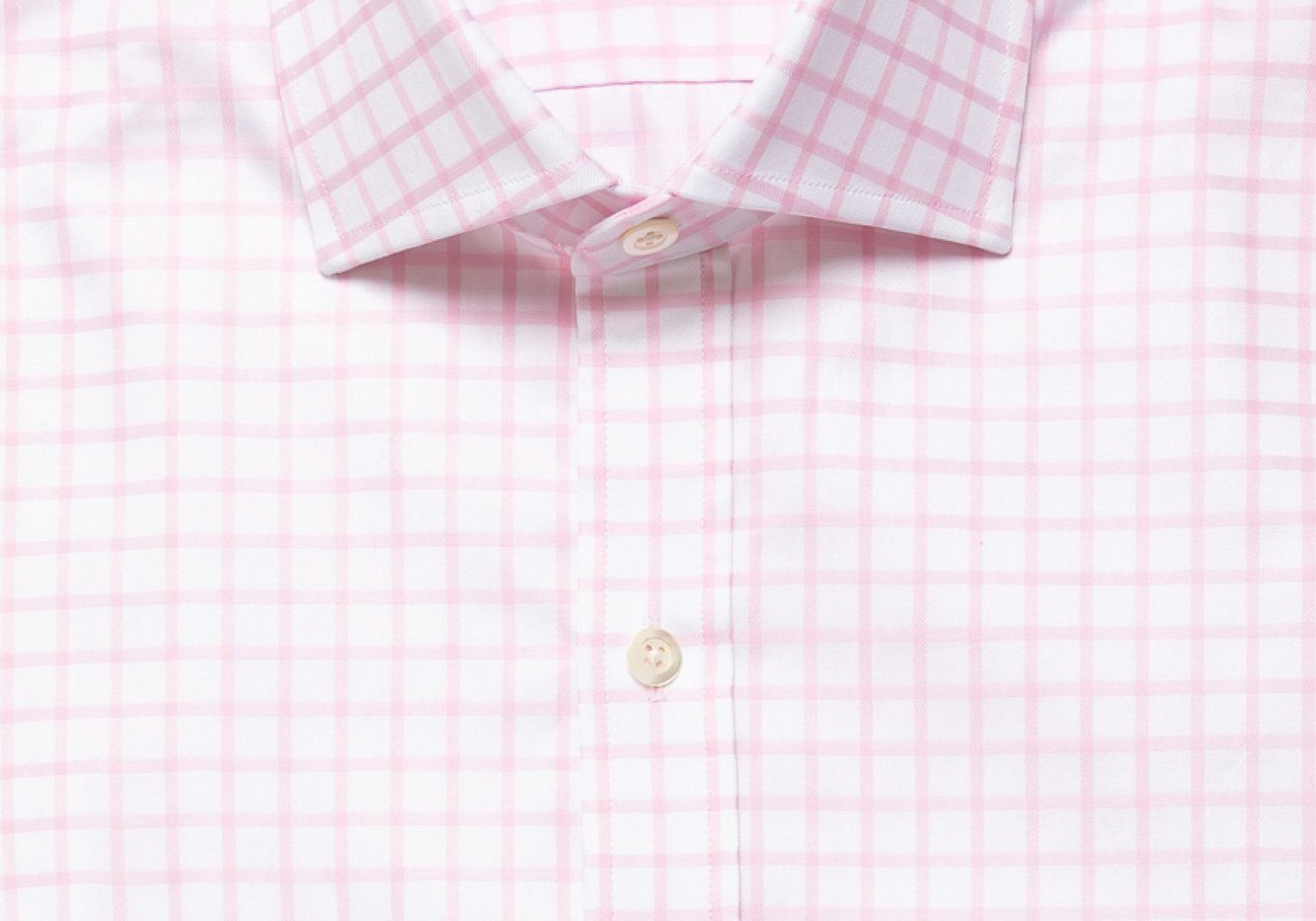 Our Fine Twill Windowpane Dress Shirt is an everyday essential for your wardrobe. This white dress shirt features a light pink windowpane check pattern constructed with 100% cotton twill fabric.