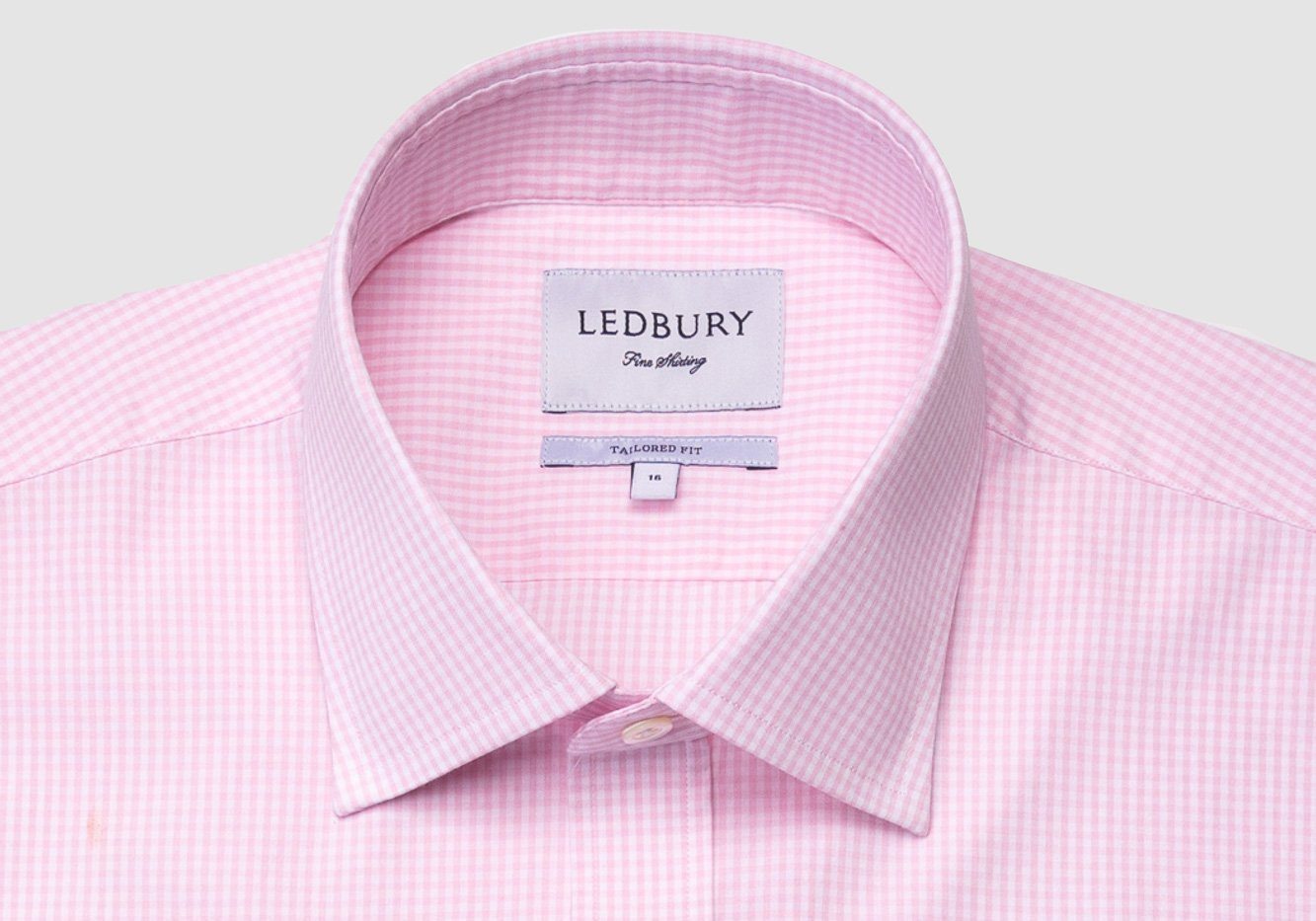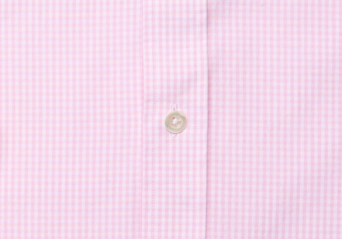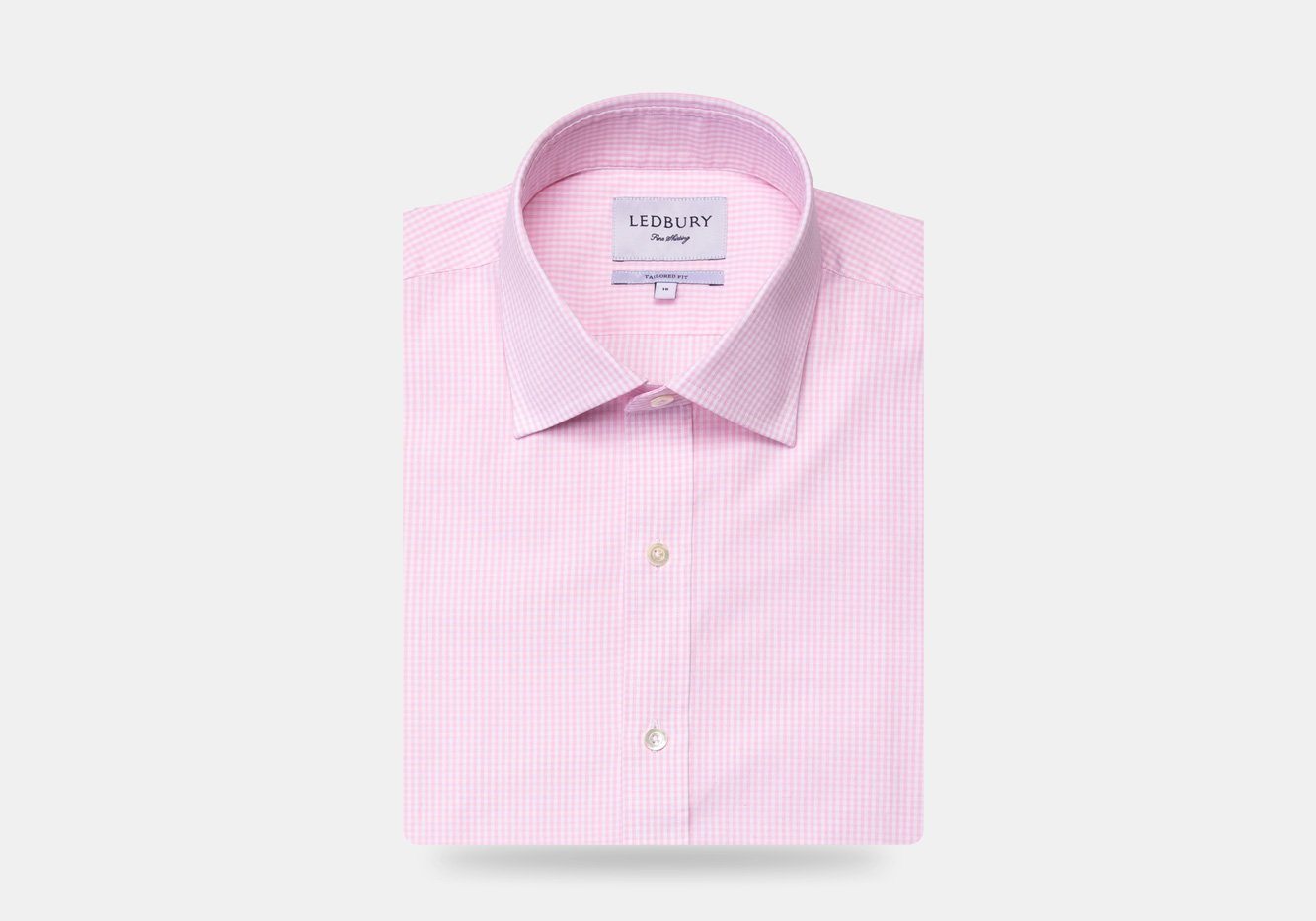 The ever versatile gingham. This small, light pink and white micro-gingham check creates the ideal pink shirt that's a great fit for any occasion. Finished with a Mid-Spread collar. Tailored fit features a darted back.
