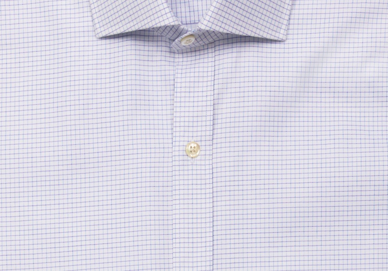 Upgrade your spring wardrobe with this twist on a windowpane. Featuring a micro-windowpane in seasonal colors, this mid-weight twill may seem ordinary at first. Take a second look and you'll find slubbed threads that make up the warp and weft - each a different color. The unique blue warp and purple weft create a subtle visual texture in this perfect warm-weather style.