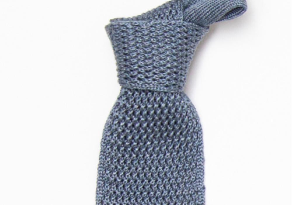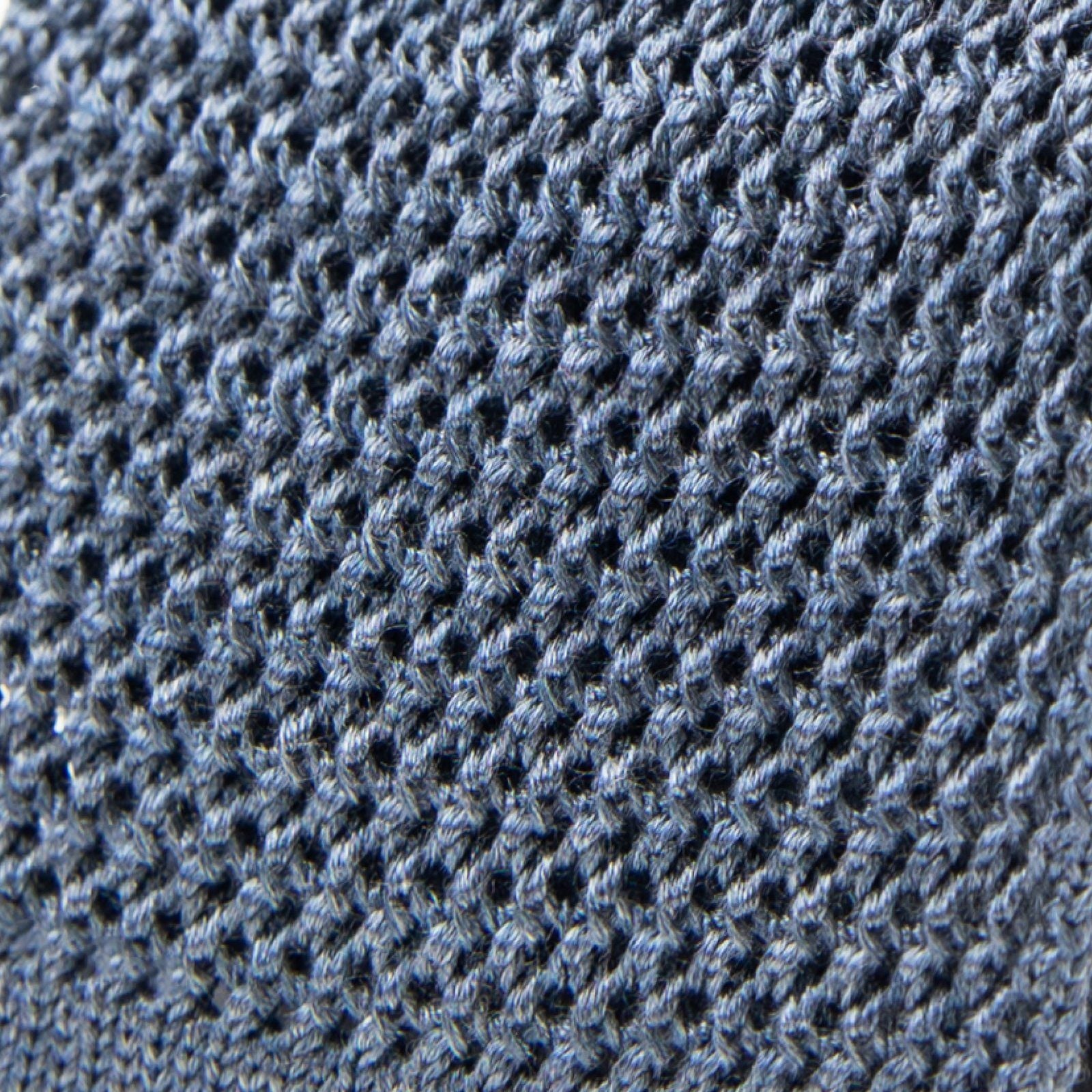 The Slate Blue Heather Harlow Knit Tie is an open knit tie with a square hem. The fabric around the neck is a soft and smooth knit for comfort. Constructed from 100% Silk, sourced from Italy. Made in Italy.