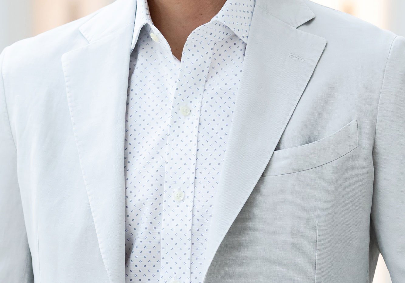 Buttons: Two button closure. Four non-functioning cuff buttons to allow for sleeve alterations.