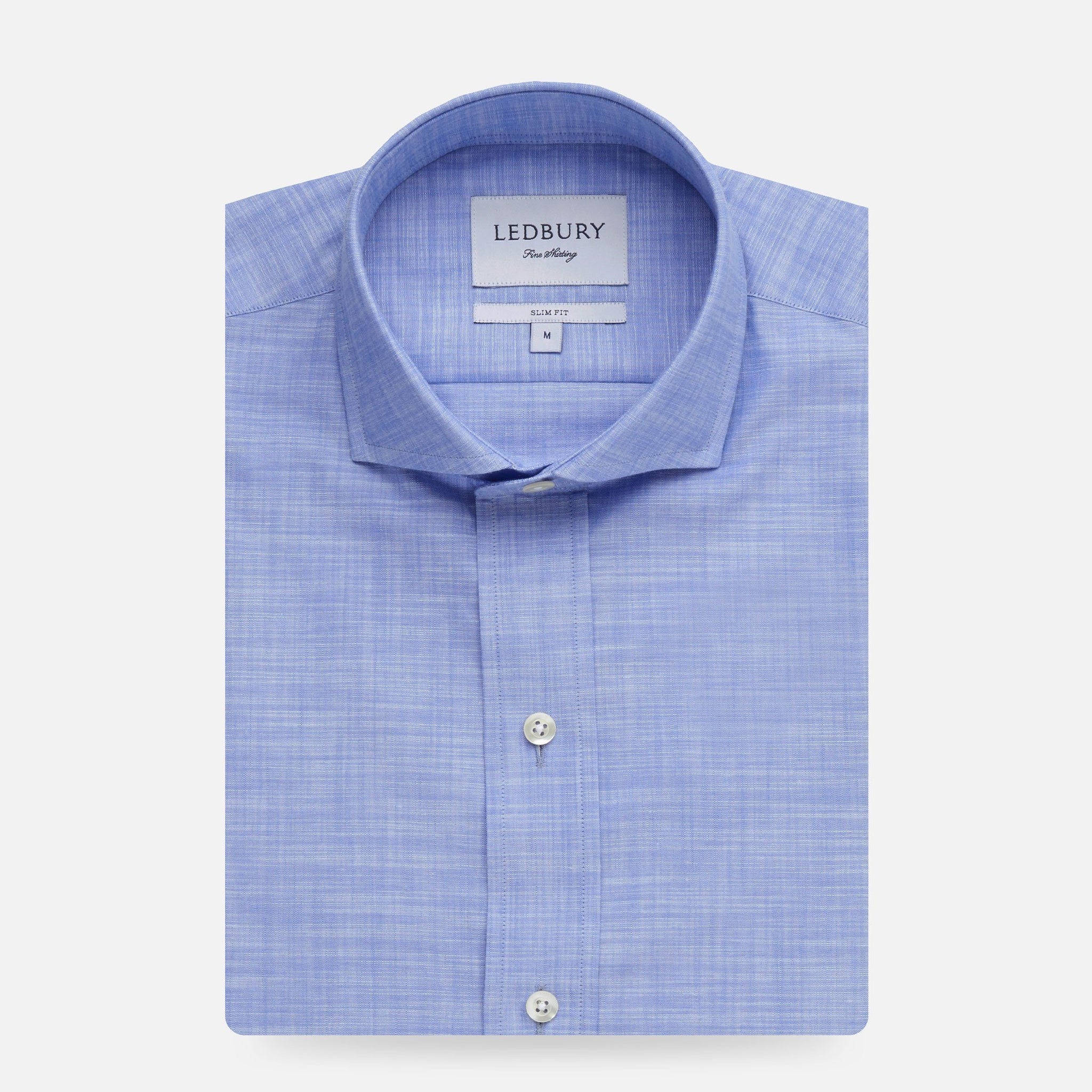 A must for every man's closet -- this blue chambray shirt will quickly become a new favorite. Its heather look gives the shirt versatility for color and texture pairing, and the Alden collar lends a casual, yet refined appearance. Best of all, The McDaniel is a lightweight, breathable fabric ideal for warmer weather looks.