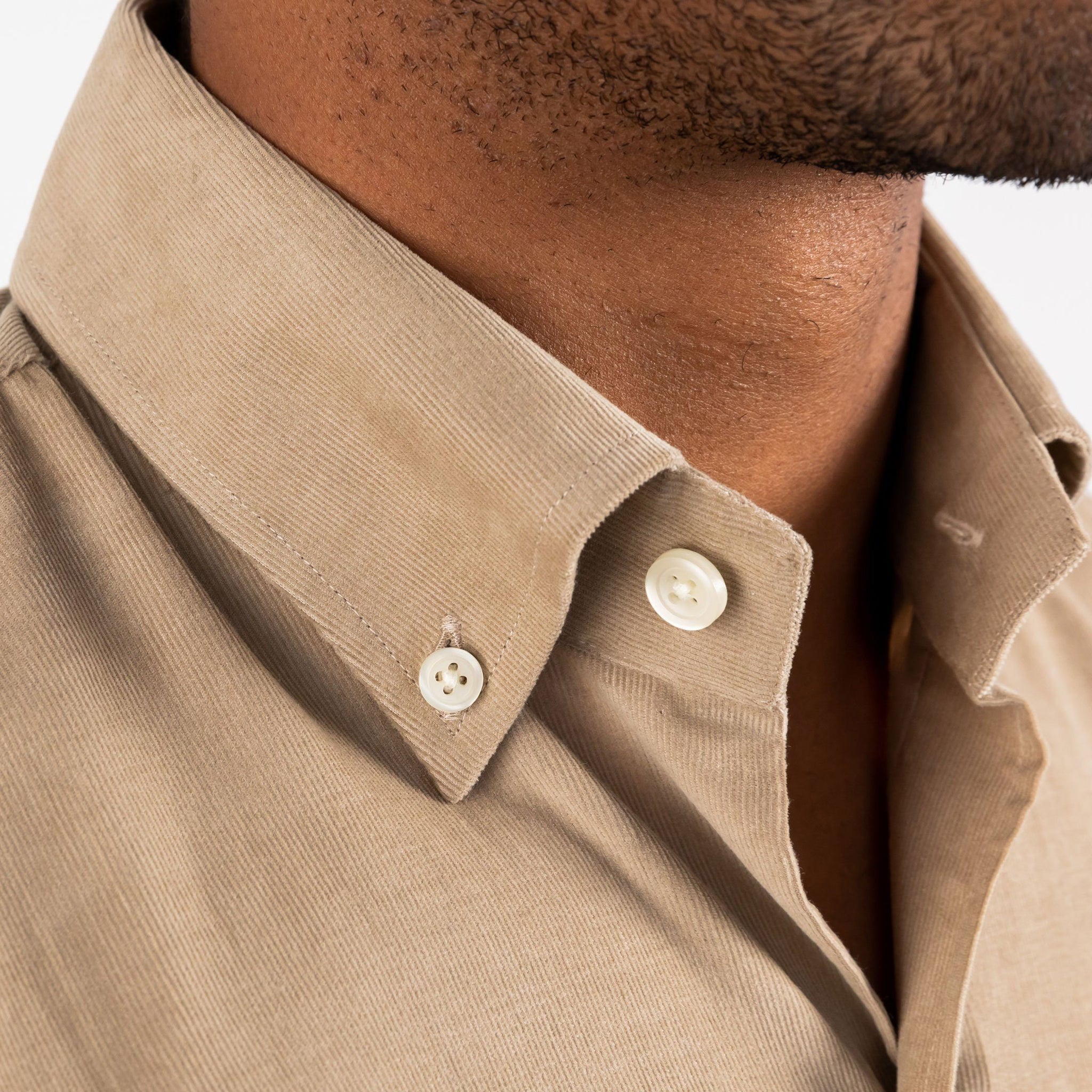 Collar: Button-down collar; finished with a canvassed interlining to prevent unwanted folding and collar collapse.