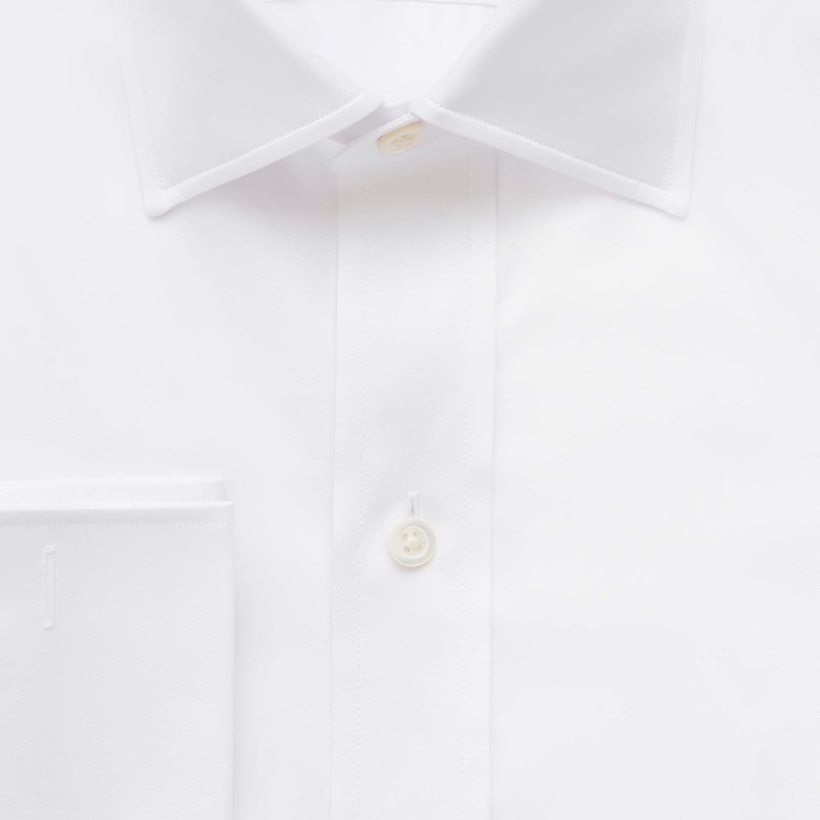 The White Fine Twill French Cuff is our take on the classic white shirt. A necessity in any man's formal wardrobe. Finished with a mid-spread collar and French cuffs. Tailored fit features a darted back.